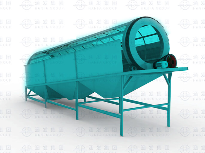 The trommel screen is mainly composed of a motor, a reducer, a drum device, a frame, a sealing cover, and a material inlet and outlet. The cylinder is generally divided into three sections, each section is 80 cm long, 60 cm in diameter, and the apertures are 13 mm, 50 mm, and 200 mm respectively. The sieve components of the first section are mainly fine particles of coal ash, soil, etc., as well as fine metal particles; the sieve components of the second section mainly include small bricks, stones, some plastics, paper, etc.; the third section The sieve components of the section include paper, plastic, bamboo wood, rubber, etc. Depending on the specific situation, the sieve holes are arranged from small to large, and the sieve holes on each section have the same aperture.